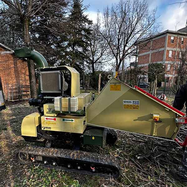 Macchinario per lo sminuzzamento di ramaglie e lo smaltimento di scarti organici.